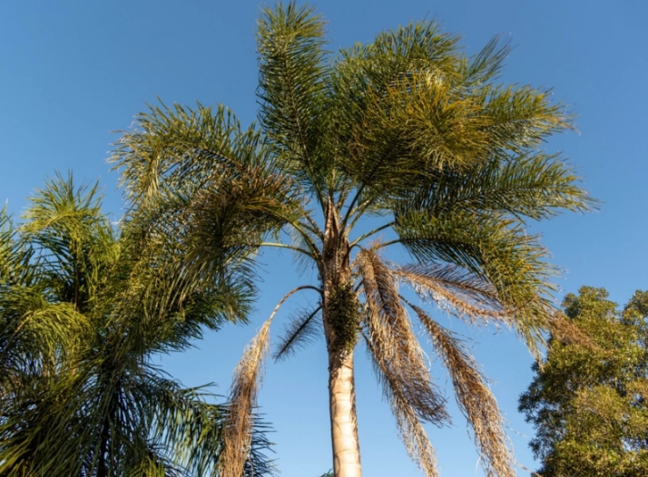 Date palm is one of the most prominent palm tree species growing in North America for many decades. Date palms generally grow tall like a tree, between 30-90 feet with a single trunk or several trunks sprouting in a cluster. It also features long gray-green feathery-type fronds with an upward arching habit. The fronds can reach 16 feet in length and help the tree adapt to long summers without rain.